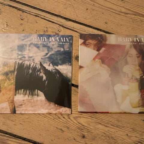 Coveret viser et træ på en bakke og har tekstinformation på bagsiden. Produktet er en fysisk vinylplade til afspilning af musik.