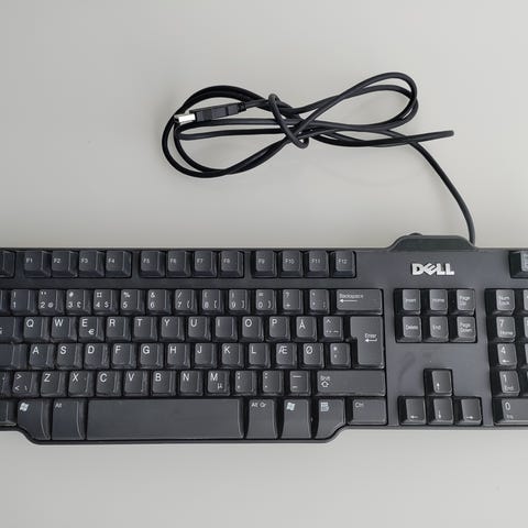 Dell Standard USB tastatur i sort farve. Tilsluttes via USB-kabel. Designet til generel brug med standardtaster og numerisk tastatur.