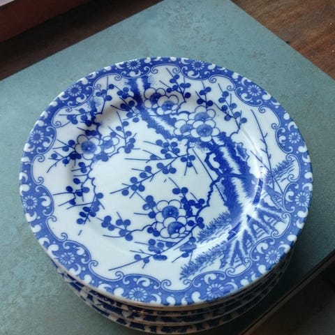 Porcelæn, 4 stk japanske tallerkner, Fine japanske tallerkener fra midten af 19. Århundrede. Diameter 15cm.