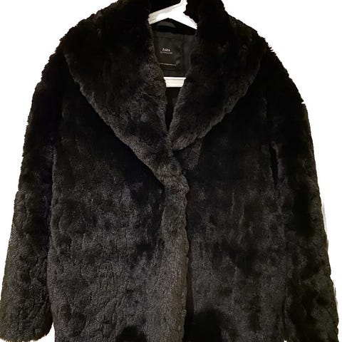 Jakke sort fake fur, str 40, fra In Wear med 2 forlommer.