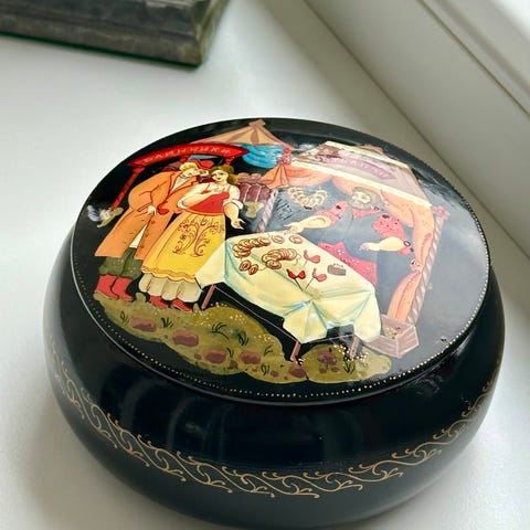 Smuk lille ældre æske fra Det Hellige Land - Israel håndlavet af lakeret oliventræ.