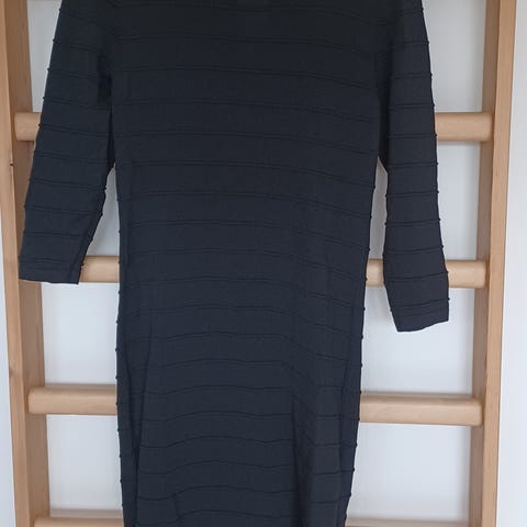 Stribet hverdagskjole til kvinder i størrelse S. Kjolen har et stribet mønster og er uden ærmer. Den er velegnet til daglig brug.