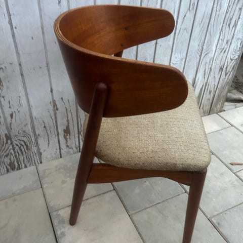 Fin designer stol fra Helge Sibast No. 7 i teak. Den skal have nyt sæde. Se billeder.