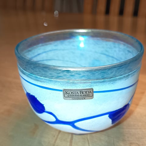 Skål fra Kosta Boda. Håndlavet. Designet af Bertil Vallien. Signeret og nummereret. Diameter 10,5 cm, højde 8 cm