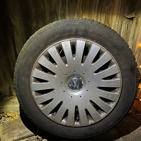 Continental WinterContact TS 830 P dæk med fælge i størrelse 205/55 R16 monteret på stålfælge. Dækkene er vinterdæk med mønsterdybde på cirka 3 mm - lovkrav på 1,6 mm.
