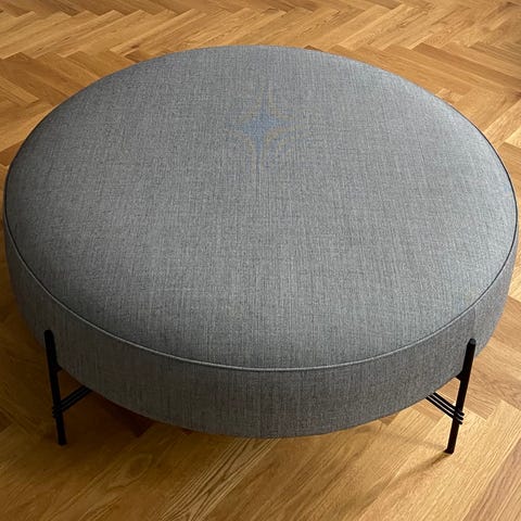 Flot Gubi puf fuld polstret med sort sokkel. Det er ikke brugt meget og skal af med den da jeg skal have noget andet i stedet for.