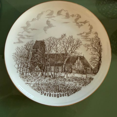 Porcelænsplatte fra Bing & Grøndahl (B&G), fremstillet i Danmark. Motivet på forsiden viser byen Lemvig, sandsynligvis et karakteristisk bymotiv eller kirke, typisk for de såkaldte “byplatter” eller mindetallerkener, som B&G producerede i 1900-tallet. På bagsiden står både fabriksmærke, serienummer (3996), og tallet 27, som kan indikere model eller produktionstype. Platten er lavet til ophæng og bruges ofte som samlerobjekt eller pynt