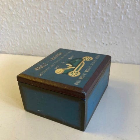 Vintage Opbevaringskasse i hårdt pap med Træhåndtag