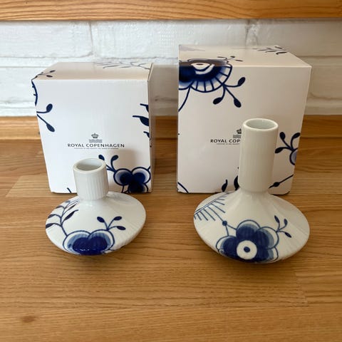 Royal Copenhagen producerede i en begrænset periode tre lysestager i forskellige størrelser til deres Blå Mega stel.