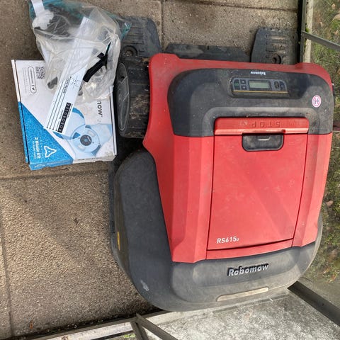 Robomow RC308 fra 2016 sælges som reservedele, med ladestation, den ene hjulmotor er ikke for god. Batteri kan holde ca. 60 min. Ny klinge, ekstra Robomow hvor mainboard er defekt og robowgrips.