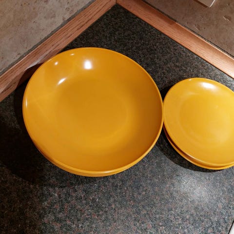 Rosti - tallerkenerne er lavet af Melamin, der er godkendt til fødevarer med en temperatur fra - 30 grader til + 120 grader. Tåler maskinopvask.