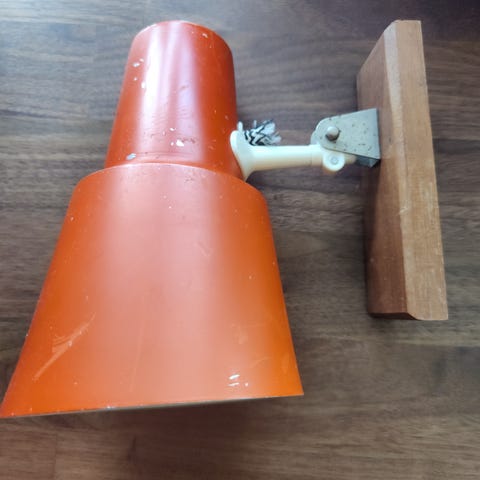 Væglampe, LB, Brun Retro væg/senge lampe i Dansk Design . Hvem der har designet den´, ved jeg ikke . Bagpå den står følgende Dansk design LB