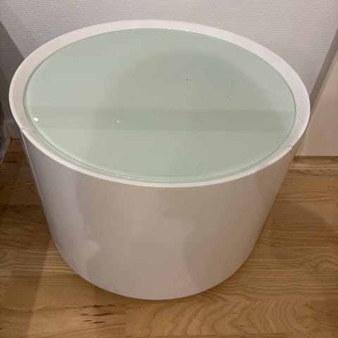 Sengebordene er i god stand med enkelte afslag i malingen i kanterne (se foto). Hjulene kører fint. Den ene skuffe kører lidt stramt.