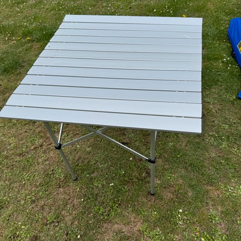 Skal du på camping, så er her bordet, som ikke fylder meget, og en picnic taske fuldt udstyret med tallerkner, glas og bestik til 4 personer.