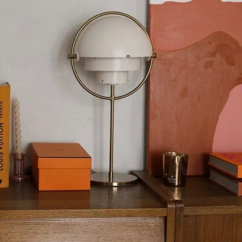 Smuk lampe i beige marmor og messing
