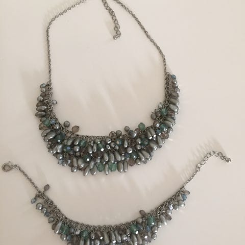 Pæn halskæde med brune perler, med øreringe til. I pæn stand. Brugt få gange.