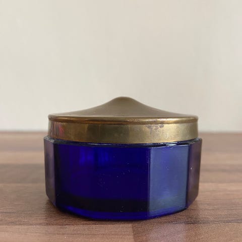 Smuk blå glaskrukke i klassisk art deco stil.
