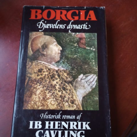 Romanen om den berømte og berygtede Borgia er noget slidt i kanter og især ryg (se billede). Men lidt svær at opdrive så vidt jeg kan se