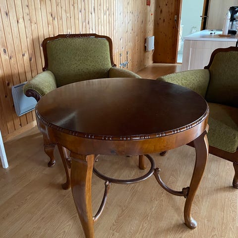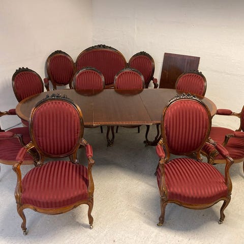 Barok/rokoko stilmøbler, Mahogni, Velholdt stole og sofa med smukt lyst betræk