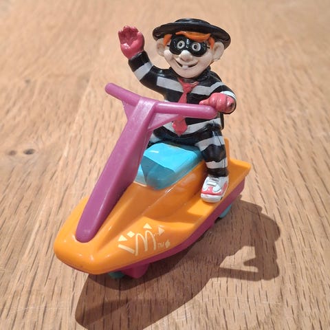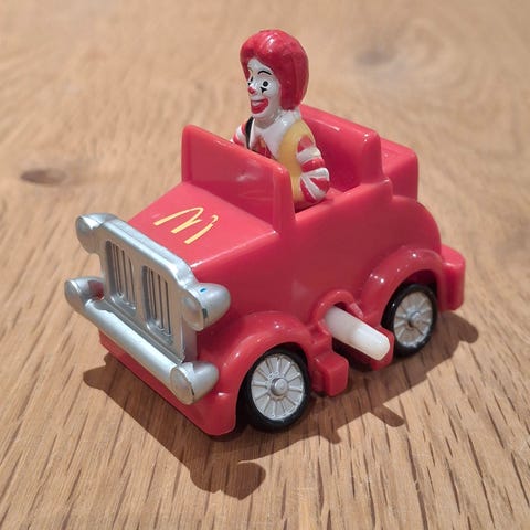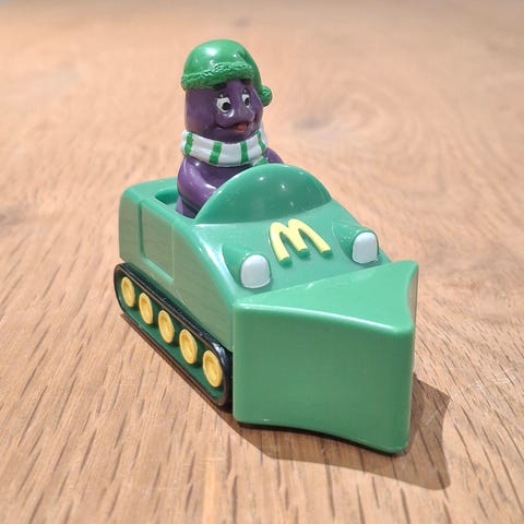 Space Caset Grimace Mcdonalds Happy Meal legetøj fra 1992. Man kan trække i raketten bag på ryggen så mekanismen i toppen køre rundt. Se også mine andre annoncer for andet retro legetøj.