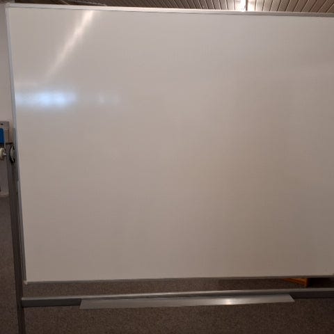 Whiteboard tavle med en fin mat, hvid overflade og en aluminiums metalramme med sort kontrast. Lille aflægningshylde samt ophæng. Skrive Feldt: 107 x 174 cm. ,Afhentes i:,Røde Kors Hjallerup (807),Bemærk at mail, chat og beskeder ikke besvares, og varen skal købes på knappen "Gå til varen"