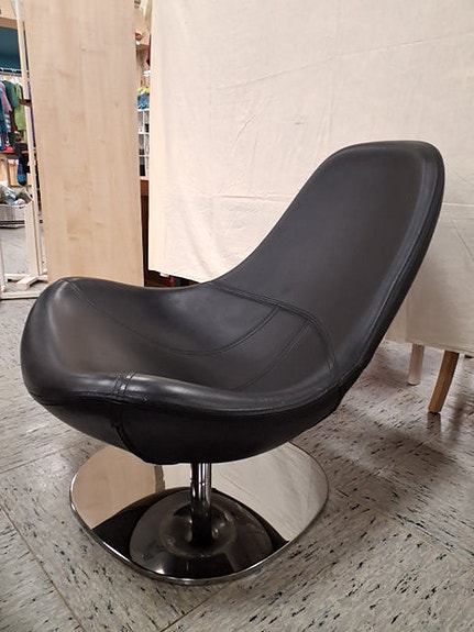 Hvilestol m. indbygget udtræk. Sædet er polstret med sort skind og har en højt rygdesign for komfort. Indbygget fodskammel. ,Afhentes i:,Røde Kors Bellinge (461),Bemærk at mail, chat og beskeder ikke besvares, og varen skal købes på knappen "Gå til varen"