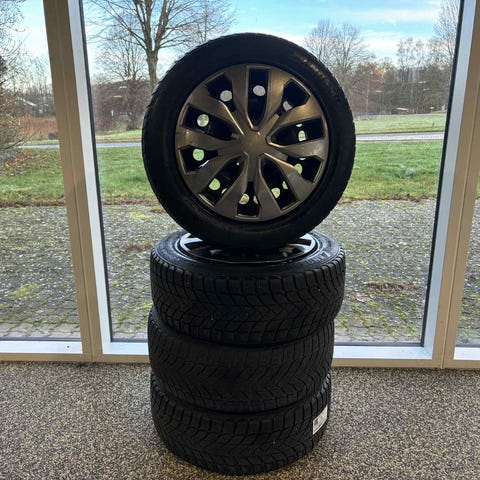 Vinterdæk i god stand. Stålfælgende har lidt ir og rust. 7 x 16 ET 43