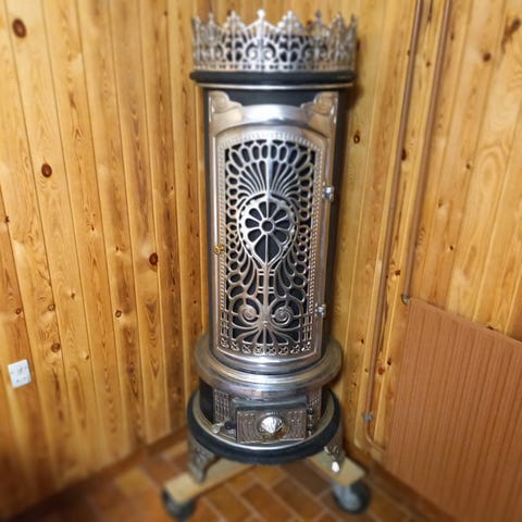 Antik Kakkelovn Hvid Porcelæn Med Dekorative Metallåger