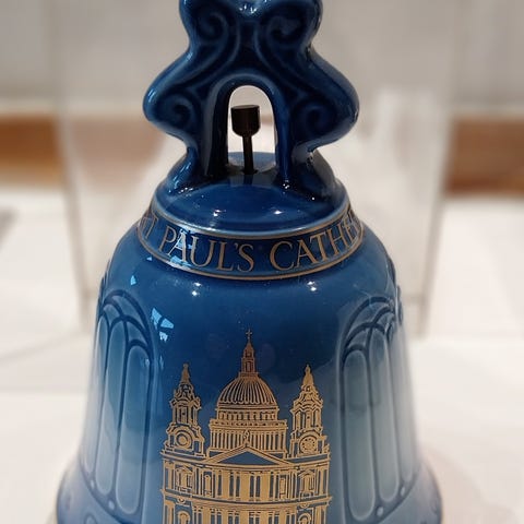 Klokken er lavet af porcelæn med blå nuancer og har porcelæns klokkekugle, samt en messing løkke til ophæng..