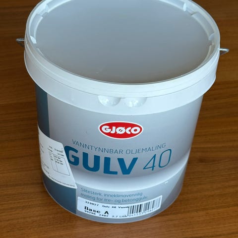 Gulvmaling (hvid) aldrig åbnet, da jeg købte for meget. Skulle angiveligt være den bedste, mest dækkende og holdbare gulvmaling.