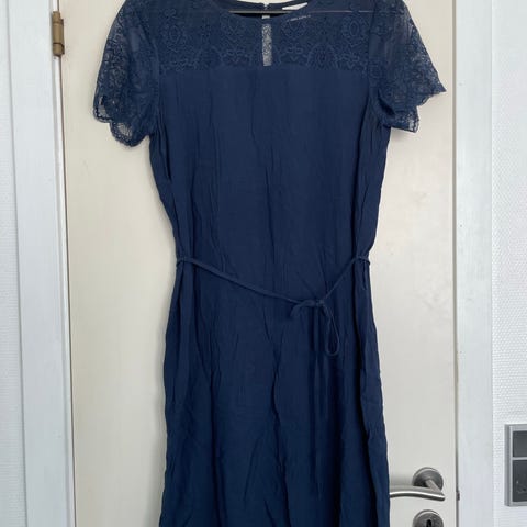 Super fin navy kjole med korte ærmer og lynlås i ryggen.