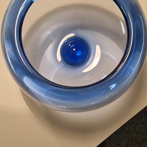 Smaragd Provence i blå transparent glas. Rund designet skål med en bred kant og en dybde, der gør den velegnet til opbevaring eller som dekorativt element. Diameter ca. 27 cm højde ca. 16 cm. Sendes ikke.