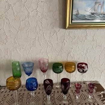 Smukke farvede glas, sælges helst samlet 2000,- ellers 200,- pr stk
