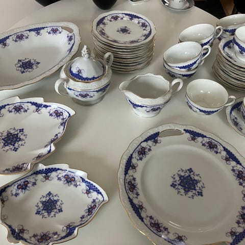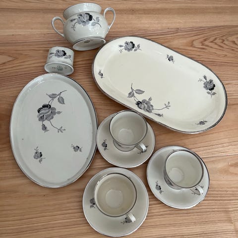 Små tallerkener med guldkant.