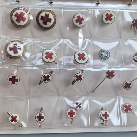Emblemer, Røde Kors Emalje, Gammelt Røde Kors emblem. Kan pudses op. 25 mm Ø