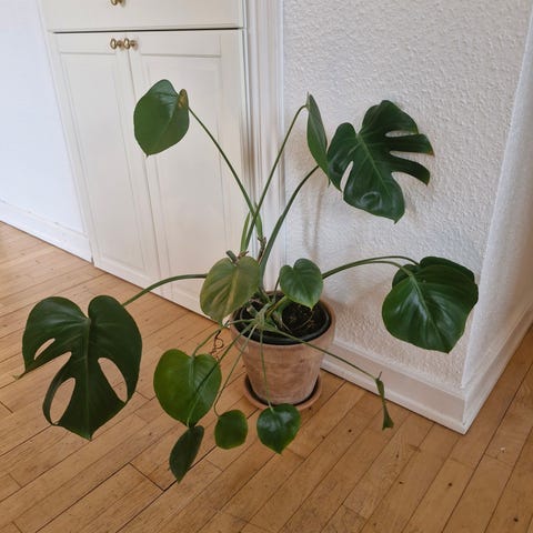 Stueplante Stueplante Fingerfilodendron Stor højde 120 cm. Bredde 130 cm. Står i plastspand. Skal du have potten med er samlet pris 600 kr. potten koster 600 kr. i butik.
