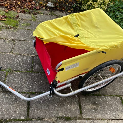 Burley Cykelanhænger med sort farve og aluminiumramme.M. Den er designet til at blive trukket af en cykel og kan bruges til transport af varer. Anhængeren har et robust stel og en fastgjort trækkrog. Den er egnet til brug som cykeltilbehør til fritidsbrug.