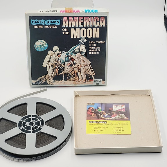 Dette er en fantastisk mulighed for samlere af vintage science fiction, 8mm film, eller dem, der elsker retro-filmæstetik! Æsken viser det flotte, pulp-inspirerede coverart, og filmen er på spole klar til at blive set (eller udstillet).