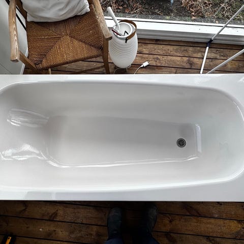 Meget velholdt fritstående Gustavsberg badekar. I højglans glasfiber. Ca. to år gammelt. L: 160cm; B: 70 cm; H: 65 cm.