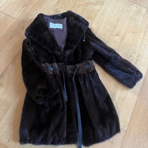 Mega flot saga minkjakke med hætte , i lys beige. Fremstår fuldstændig som ny. Bemærk ny pris