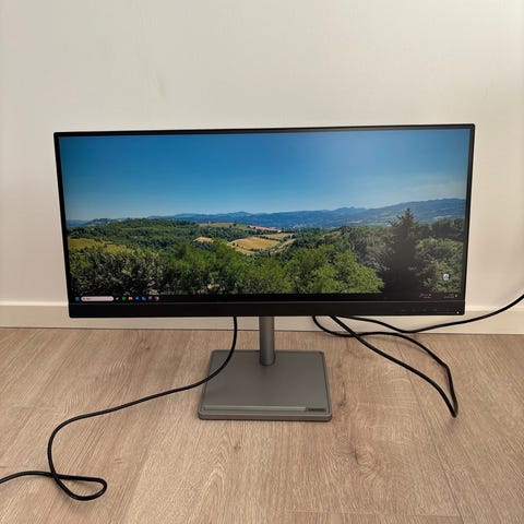 Rigtig lækker ultrawide skærm, som har været fantastisk at arbejde ved. Den giver god plads til multitasking og er perfekt til både arbejde, studier og almindelig brug.