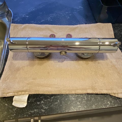 Helt nyt og uåbnet bruse batteri i farven guld.
