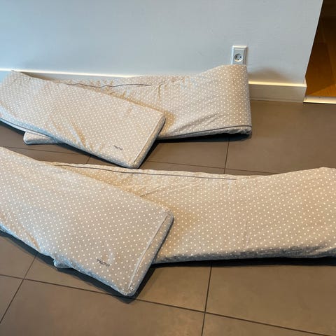 Placeres på indersiden af tremmesengen/kravlegården og beskytter mod træk og hårde kanter.