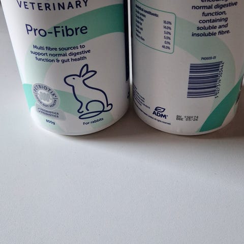 Protexin Profibre til kaniner. Dette produkt indeholder mange sunde fibre, som dine kaniner vil elske og få meget gavn af. Der er desuden også både pro- og præbiotika i, som er yderst vigtigt for at opretholde eller skabe en stabil tarmflora for din kanin. Disse profibre kan gives ad libitum, så man kan også bruge dem som godbidder til kaninen. Det er ovenikøbet en SUND godbid i forhold til mange andre, som man kan købe. Jeg har selv kun virkelig gode erfaringer med dette produkt, og jeg har brugt det i 9 år til mine egne kaniner.