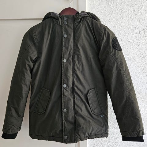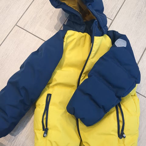Skogstad børnejakke i størrelse 140 til dreng. Jakken har en gul og blå farvekombination og er udstyret med hætte med aftagelig pelskant. Jakken har flere lommer med lynlås og er designet til udendørs brug.