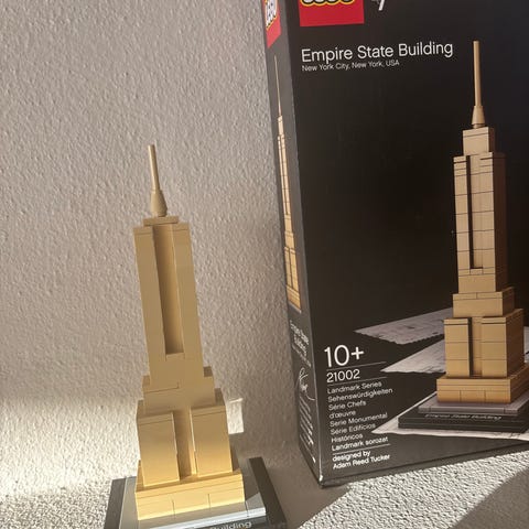 LEGO Architecture Empire State Building Model Kit for ages 10 and up. The set includes pieces to build a detailed replica of the Empire State Building. Designed for display and educational purposes, suitable for children and adults interested in architecture and model building.