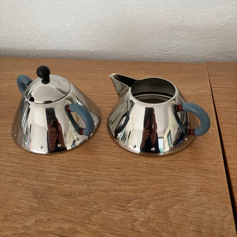 Alessi Creamer 9096 Blå, 200 ml. Design Michael Graves. Højde 4,5 cm, dia 10,5 cm.