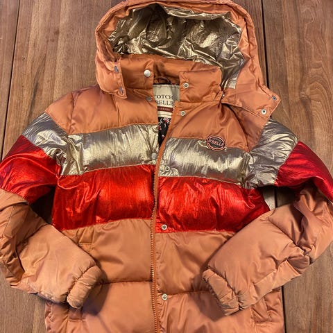 Scotch & Soda unisex børnejakke i størrelse 14, det svarer til 164/170. Jakken er blå og designet til børn. Den har en hætte og lukkes med lynlås og knapper. Jakken har lommer foran og er velegnet til køligt vejr.