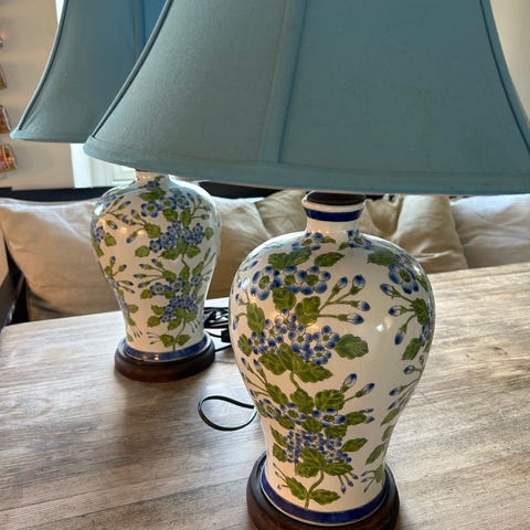 Bordlamper i porcelæn med blomster inklusiv skærm