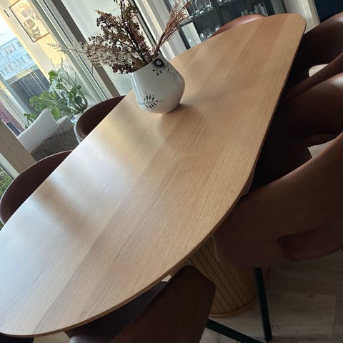 det har kostet 2700 for ny. benene kan tages af. Værdsætter hurtig afhentning da mit andet spisebord er kommet❤️❤️
